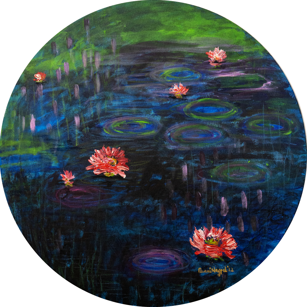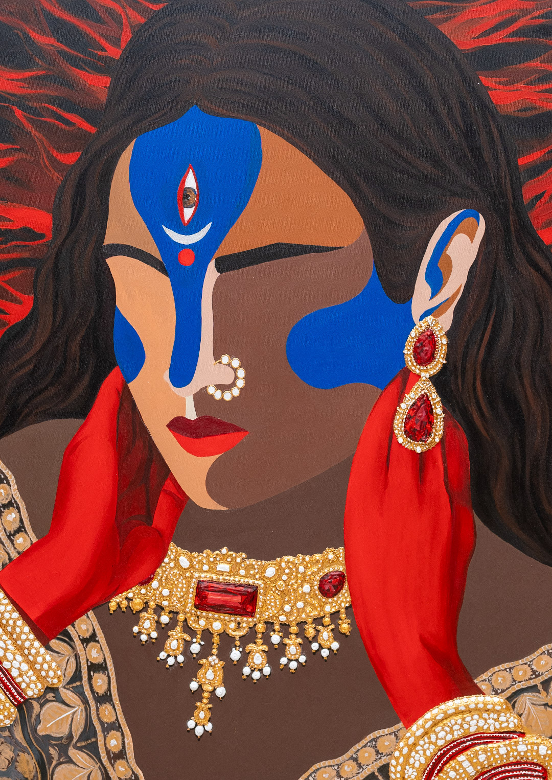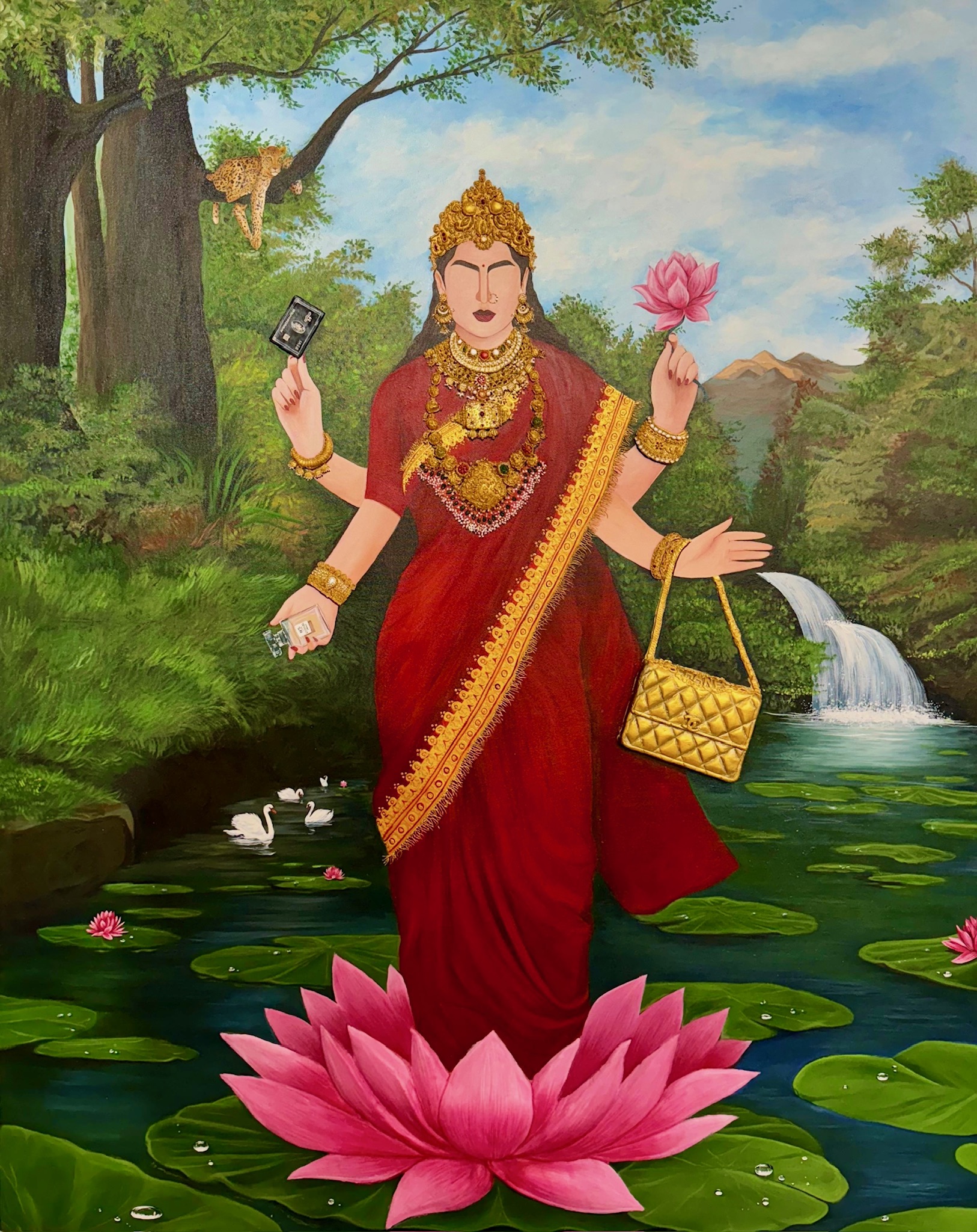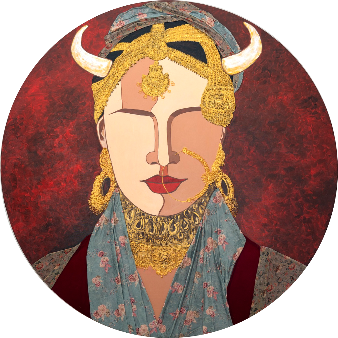 The inspiration of the painting has been taken from Raja Ravi Varma’s classic ‘Woman holding a fruit’ in which he lyrically combines eroticism with innocence.