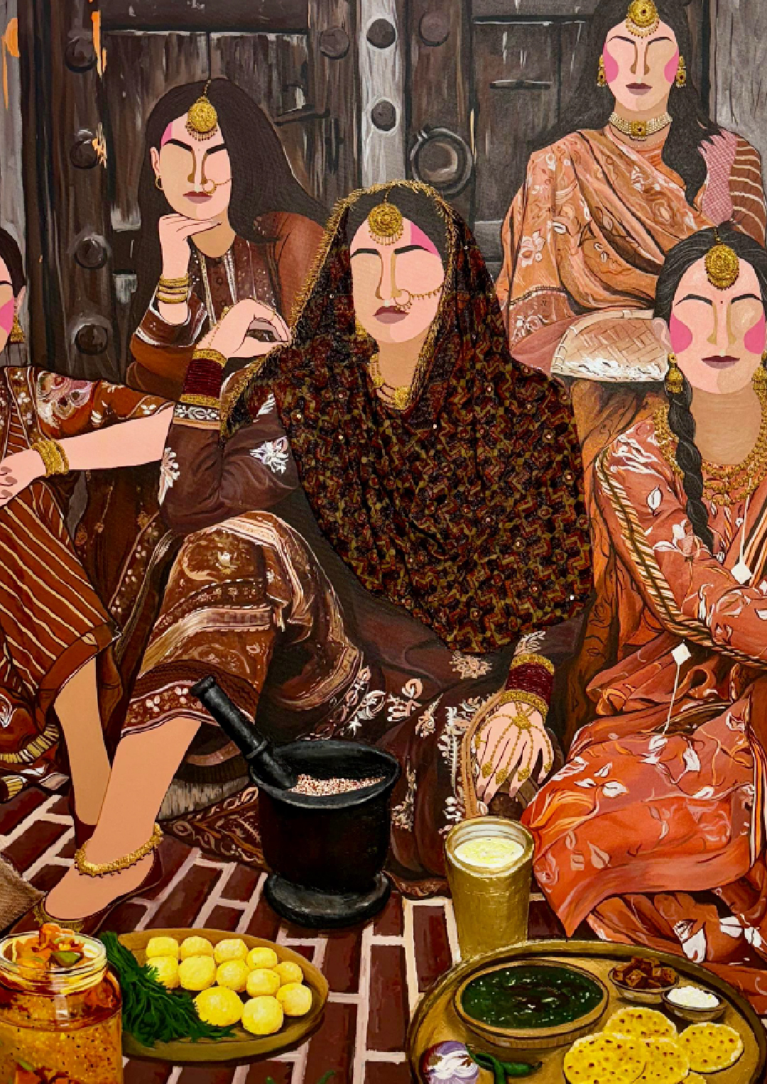 The artist recreates Amrita Sher-gil’s renowned painting ‘The Three Girls’ providing it a modern & fashionable touch.