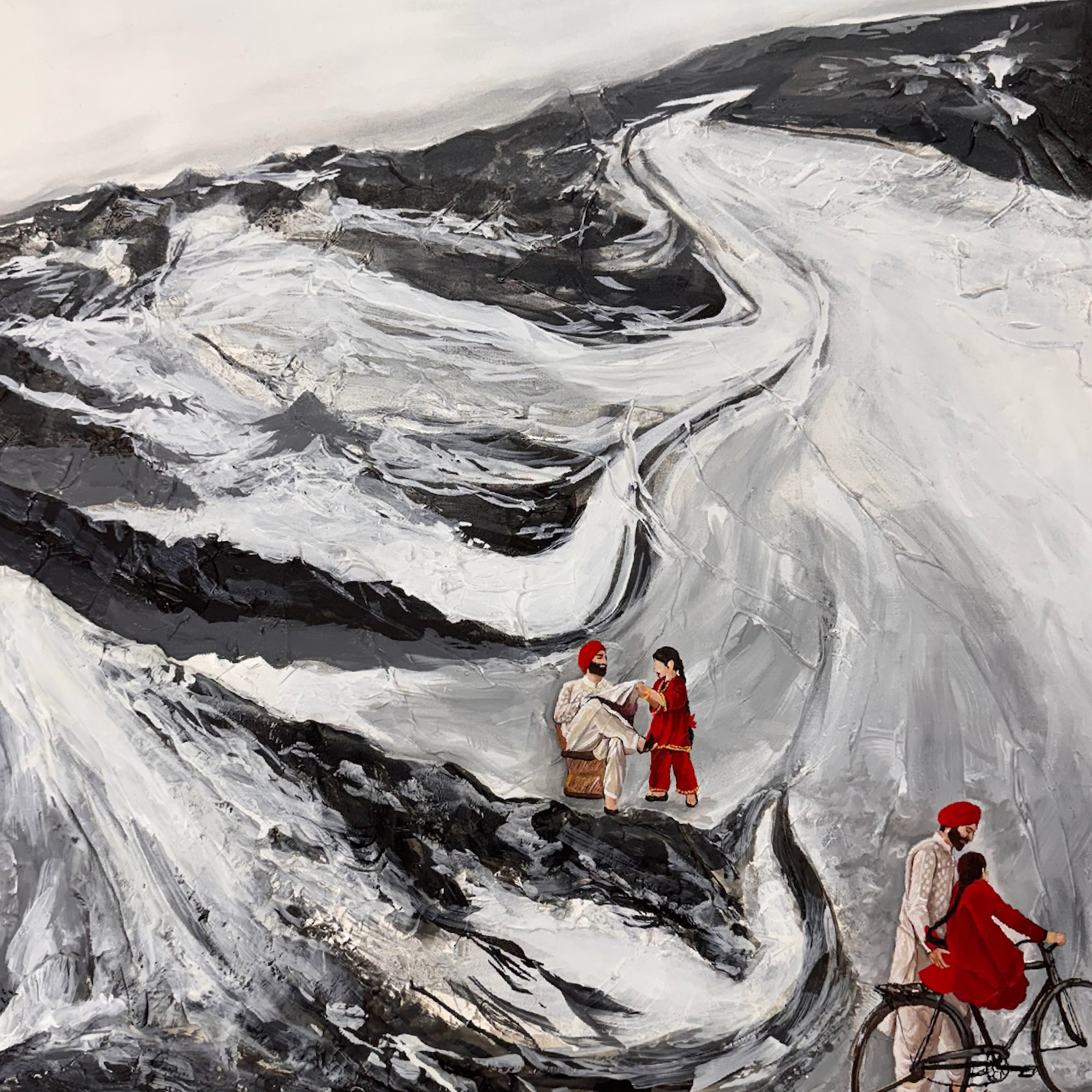 The artwork captures the majestic Alaskan mountains as symbols of a father’s profound journey raising his beloved daughter. The peaks, with their towering heights, represent his strength and unwavering support. Like a steadfast rock, the father stands behind his daughter, silently offering protection and guidance. Though often unnoticed, his presence is the foundation upon which her life is built—his value only truly realized when she ventures out on her own.