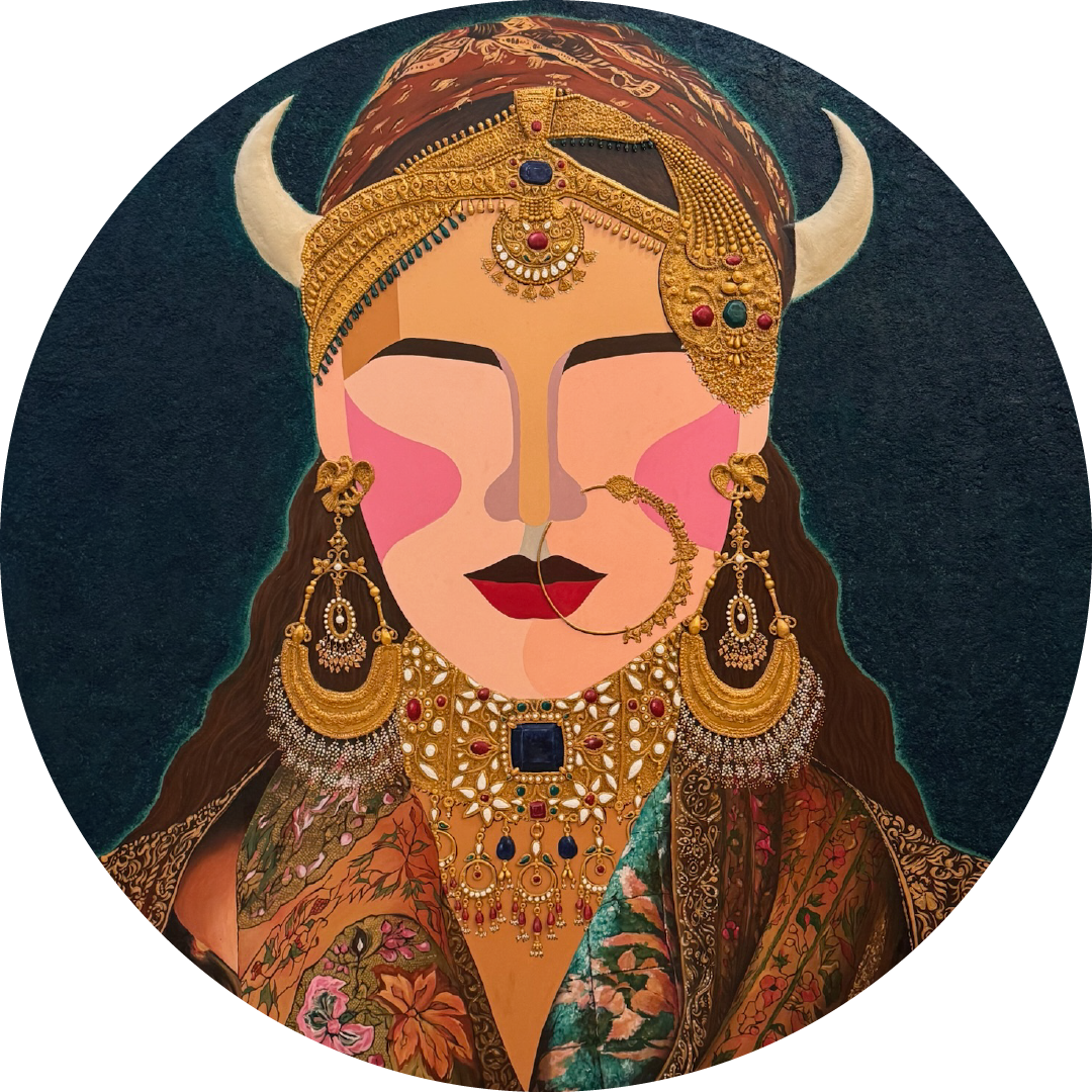 “Firdaus” is an Arabic word that signifies ‘paradise’. After the battle is won with the bullish patriarchy, the paradise hails the welcome of their queen. The queen of their paradise, the Eve of their Eden who needs no Adam. She has become ‘one’. She is Shiva and she is Shakti. Complete in herself, a queen, an empress, ready to bring the lost hopes of paradise back to life. Adorned with antique jewellery that narrates the story of her victory and the horns that marks the beginning of her acceptance as a human, who has flaws, who is not perfect yet powerful.