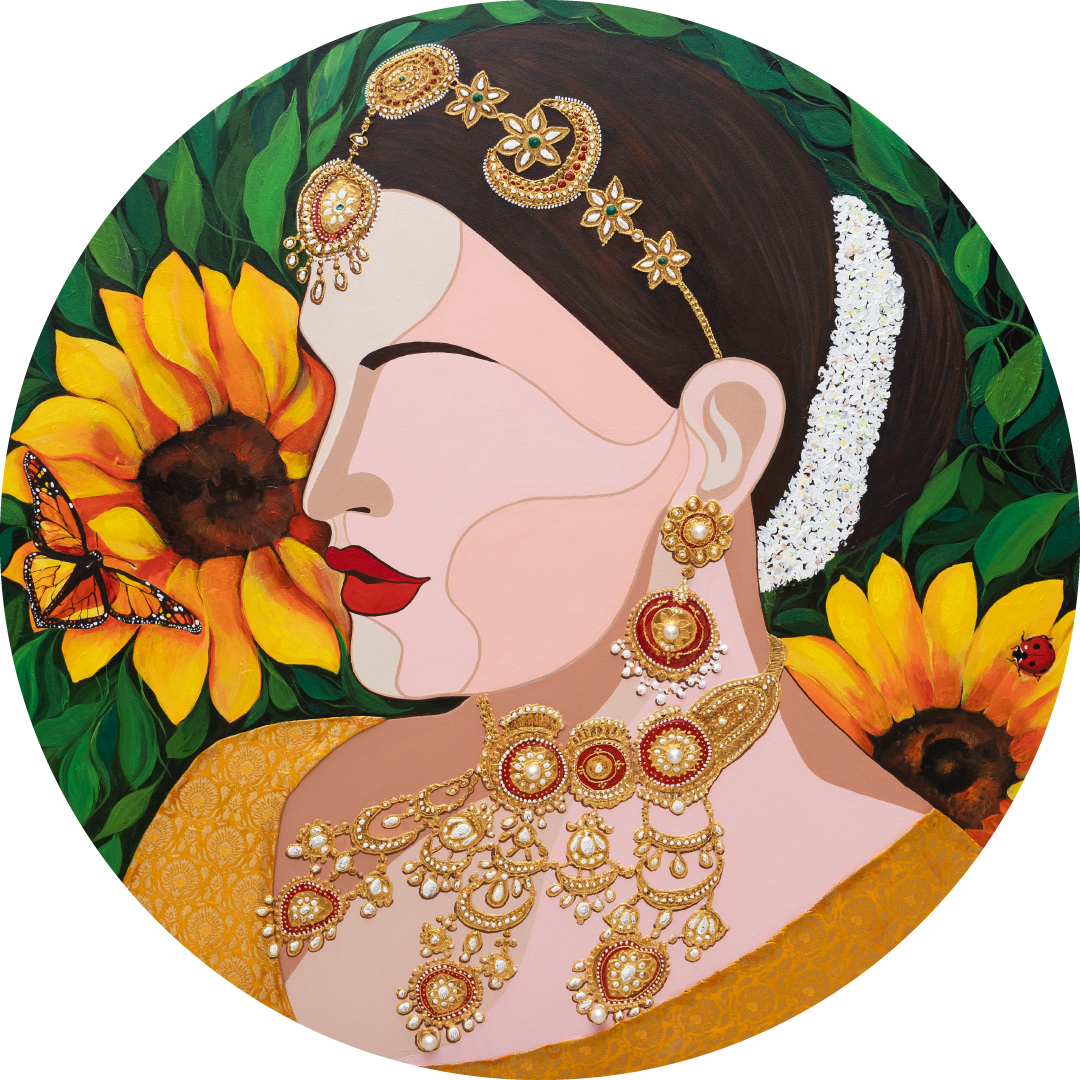 As the Muse of the Meadows, Kushmanda brings the gift of spring, infusing the world with vitality and energy. The sunflowers around her burst forth with abundant life, representing the blossoming of nature and the butterflies are denoting the rejuvenation of the soul into a world of harmony and serenity.