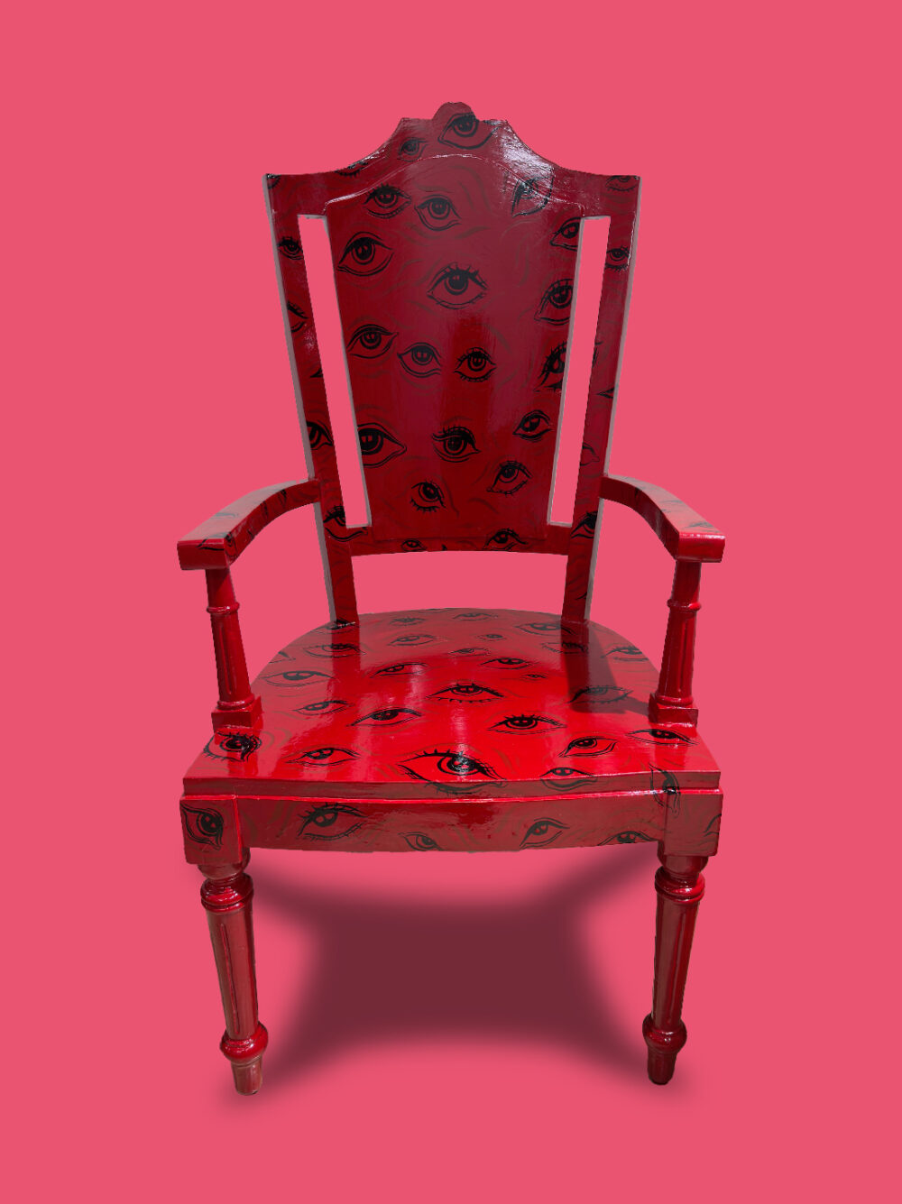 ‘Evil eyes’ is a real concept and is understood worldwide. There is a rise in people realising and understanding how protecting themselves from the evil eye is really important. The artist presents an artistic take on this concept and has made a ‘nazar battu’ chair that will stand out as a piece of fun furniture in the house but will also protect your home from any bad vibe. The artist does not paint eyes in her portraits and canvases. She believes in expressing her thoughts through the elements rather than the eyes – however much her ‘artistic’ sensibilities may have been in question on social media; they have caught the eye of the critics and have become the talk of town, so to say. Now, through this art work, she is making sure to tell the whole wide world about how only eyes cannot be the medium for expressing catharsis or joy.
