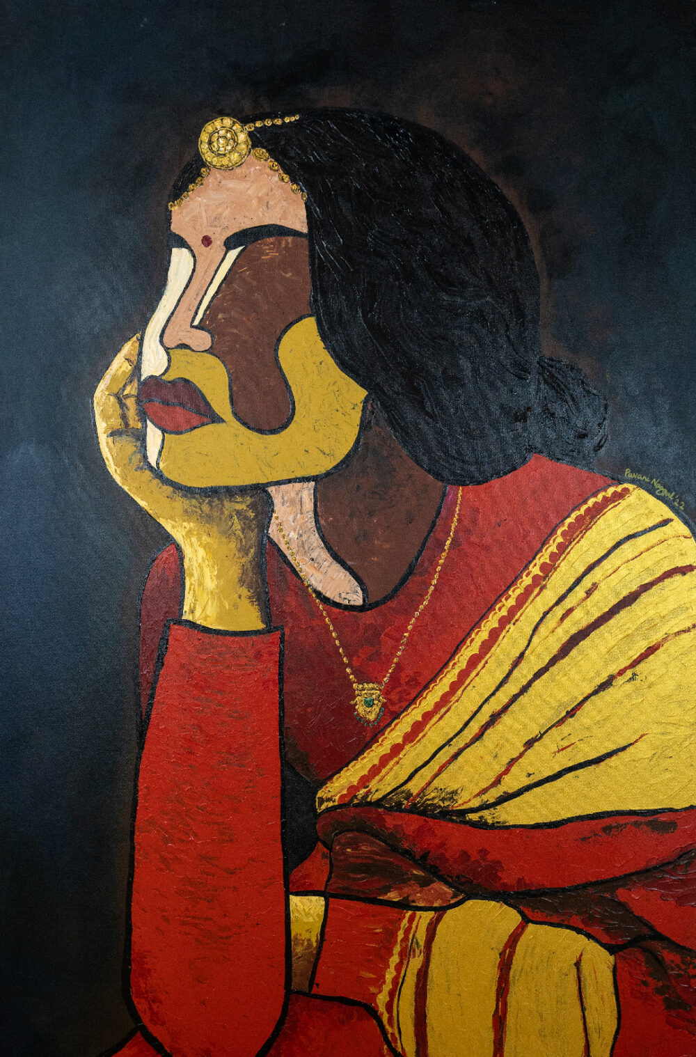 The color ‘red’ is a statement in itself! This color symbolises power, passion, love, romance, intensity! Indian women have been observed to grace their beauty using this color on their wedding day! Although the modern trends are changing still a connection with red color is something beyond imagination. This painting can be a